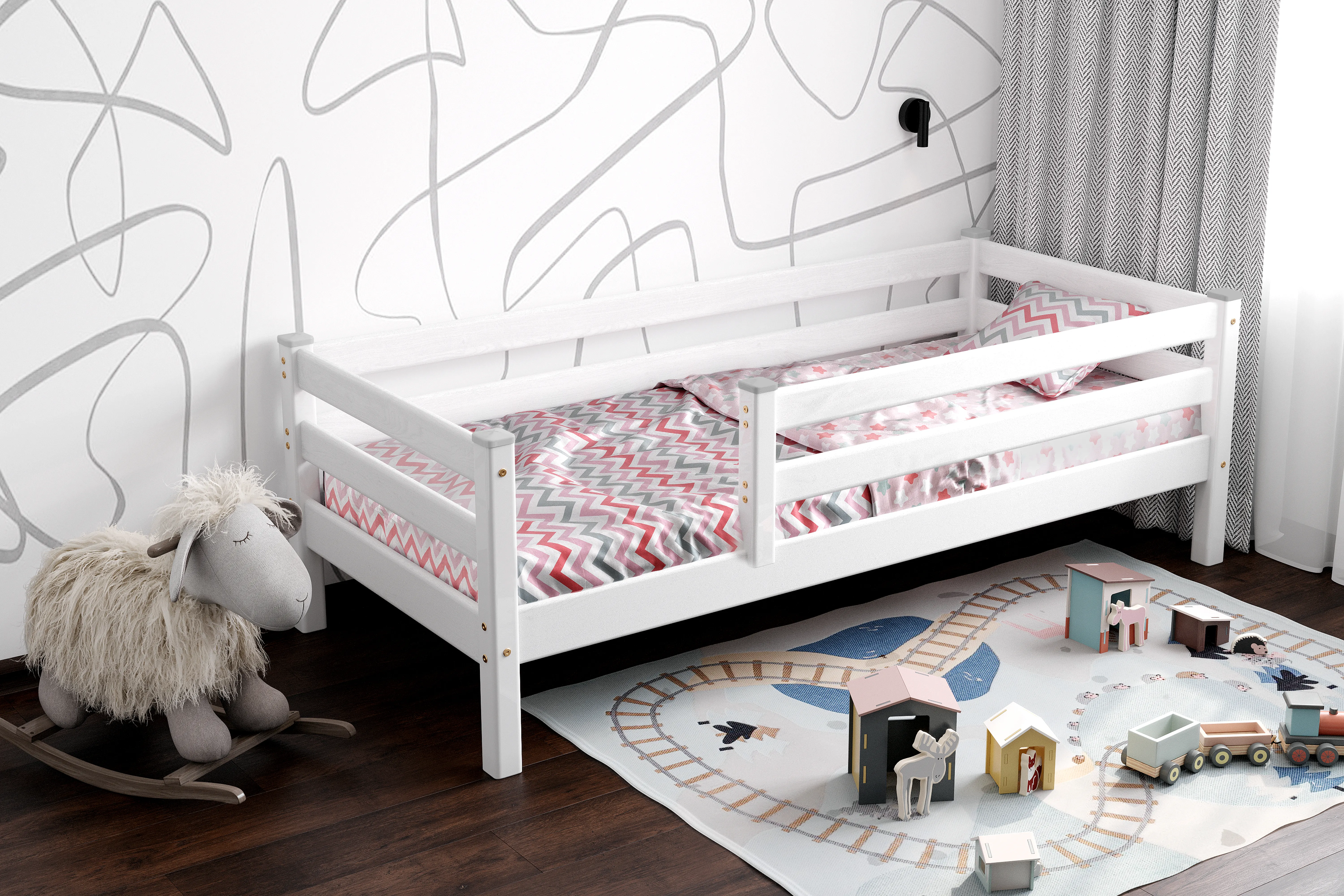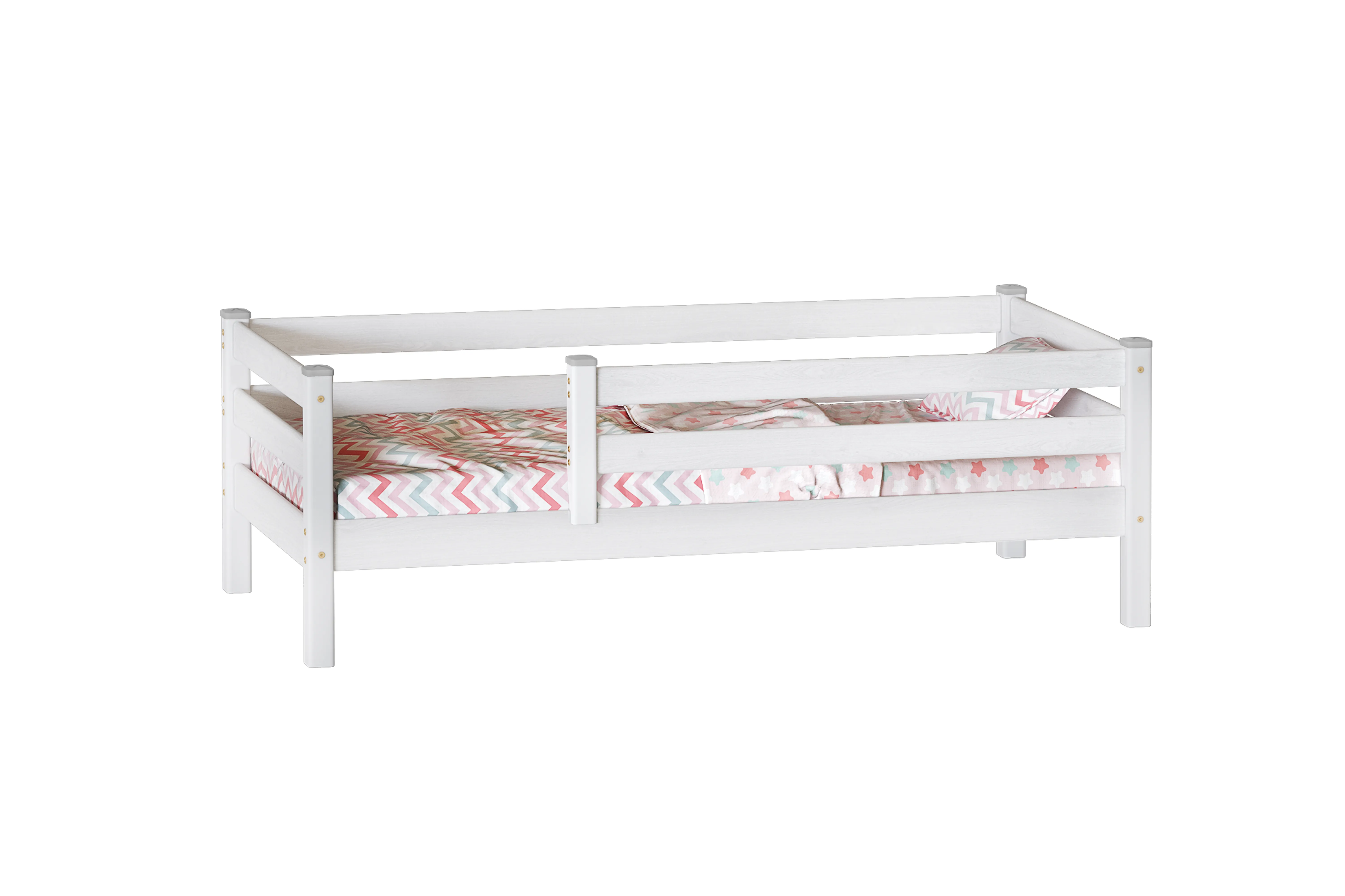 Кровать имеет стильный и современный дизайн, впишется в любой интерьер детской комнаты. Конструкция предусматривает наличие удобных бортиков, которые обеспечивают безопасность ребенка во время сна.