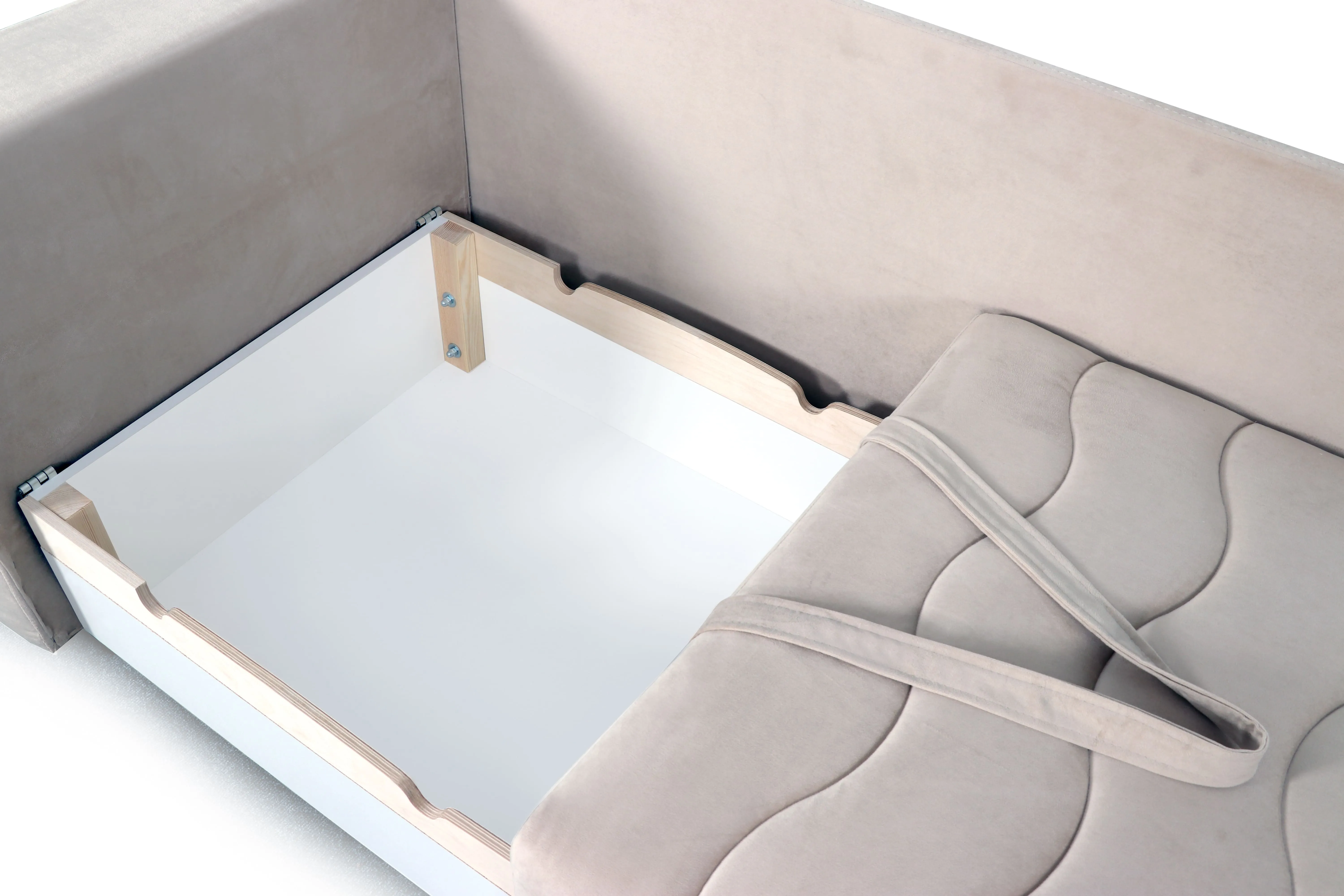 Диван при необходимости превращается в полноценную комфортную кровать, а вместительный бельевой ящик добавляет функциональности.