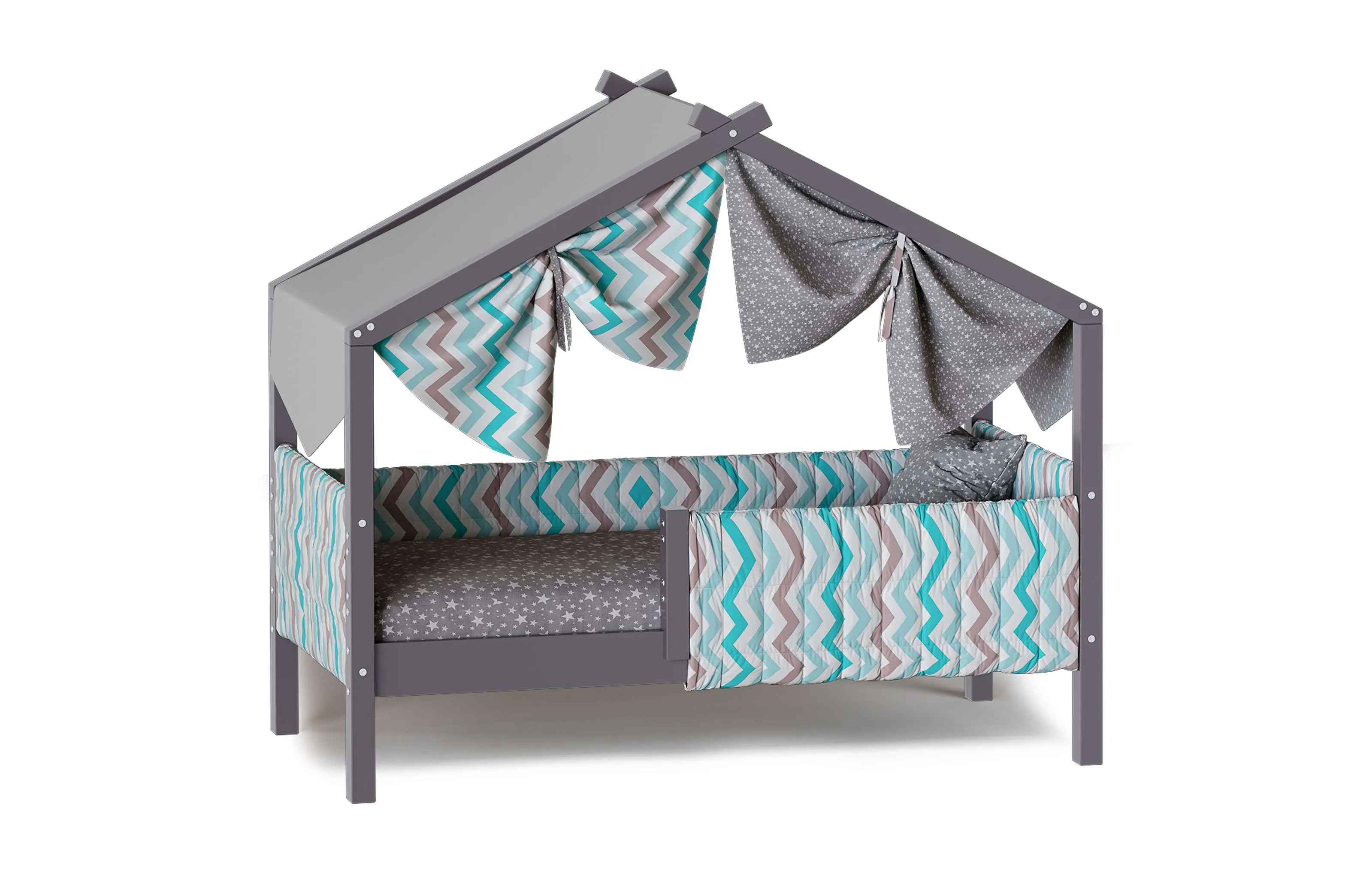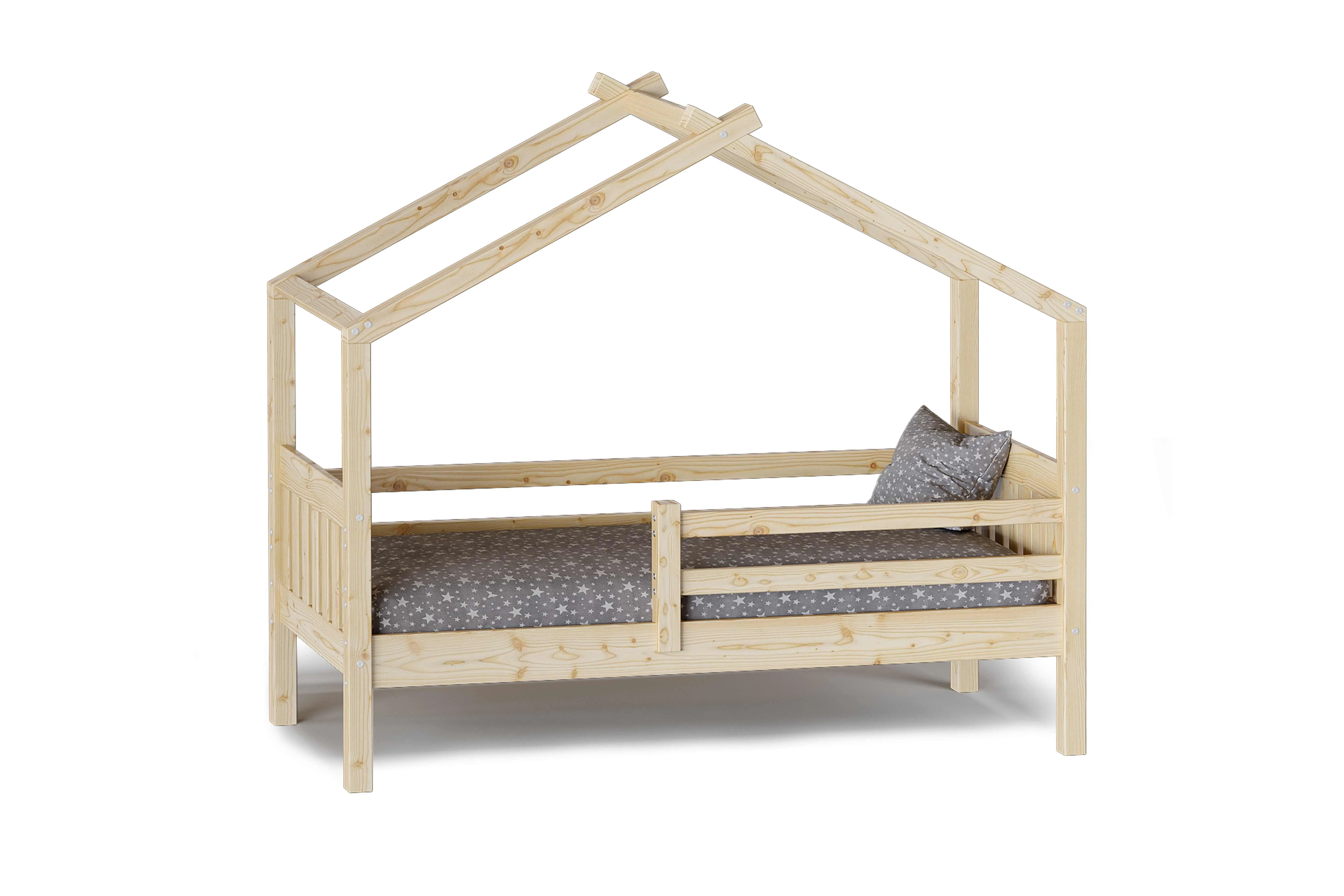 Каркас укомплектован основанием из поперечных гнутых ламелей. Головная и ножная спинки соединены стропилами, образующими крышу, благодаря чему малыш будет ощущать себя в собственном уютном домике. В комплектацию кровати входит ортопедическое основание из гнутоклееных ламелей.
