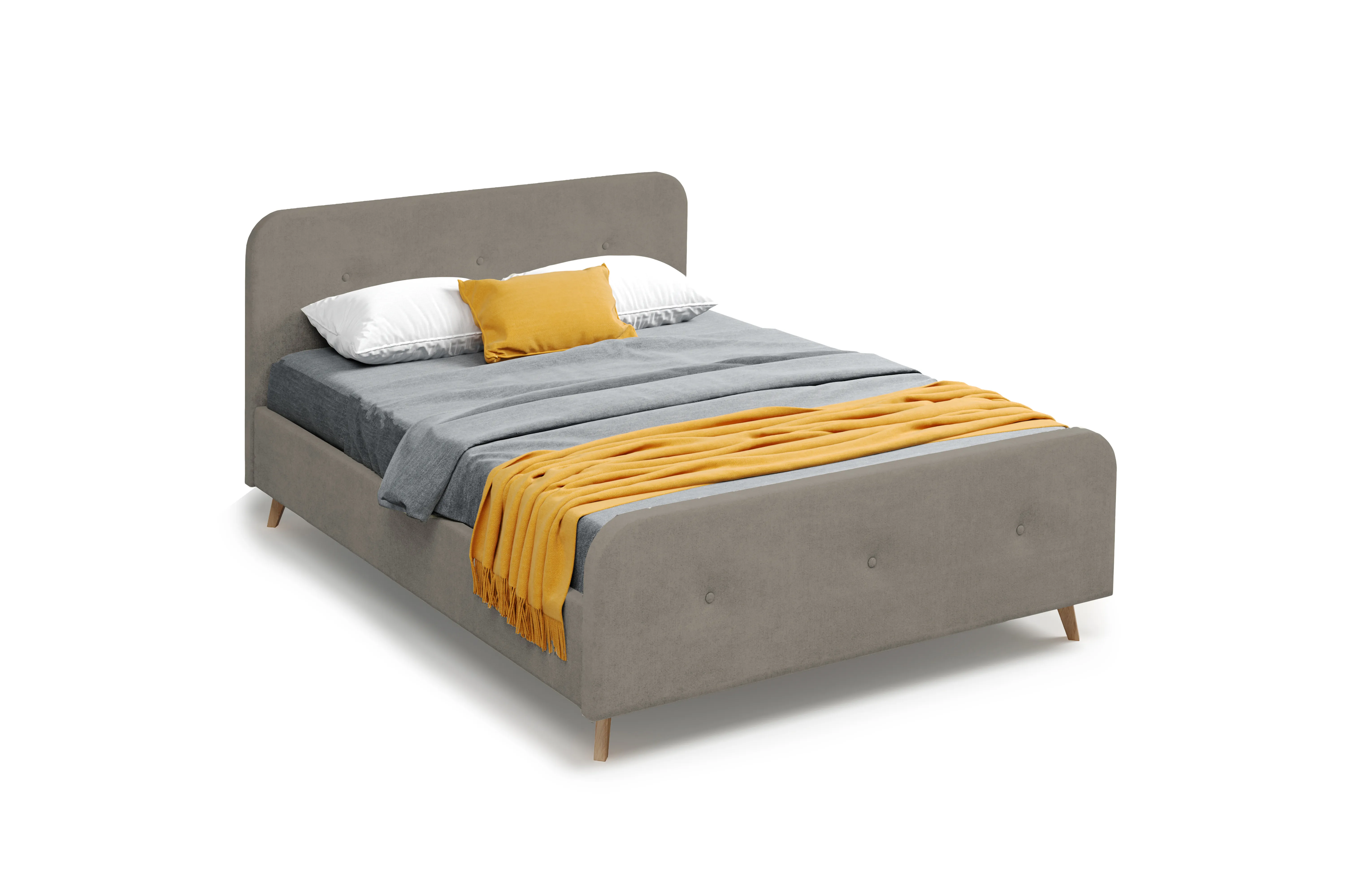 Изголовье имеет закругленный силуэт, обтянут велюровой тканью с пуговицами, что обеспечивает дополнительную мягкость и уют. Высокие стильные ножки из массива березы создадут ощущение легкости и воздушности.