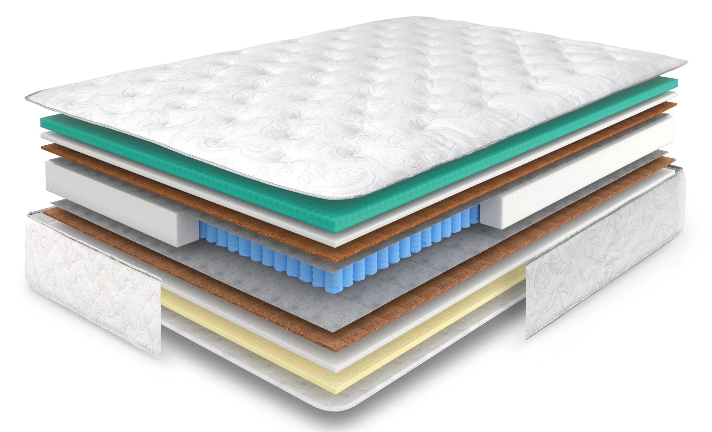 Ортопена повышенной плотности усиливает анатомические свойства матраса, а натуральная латексированная кокосовая койра придает жесткость и долговечность.