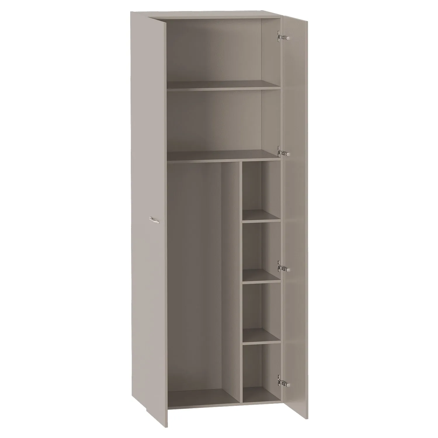 Шкаф однодверный выполнен из ЛДСП цвета Капучино и имеет 6 вместительных полок. Открывание двери возможно на левую и правую сторону.