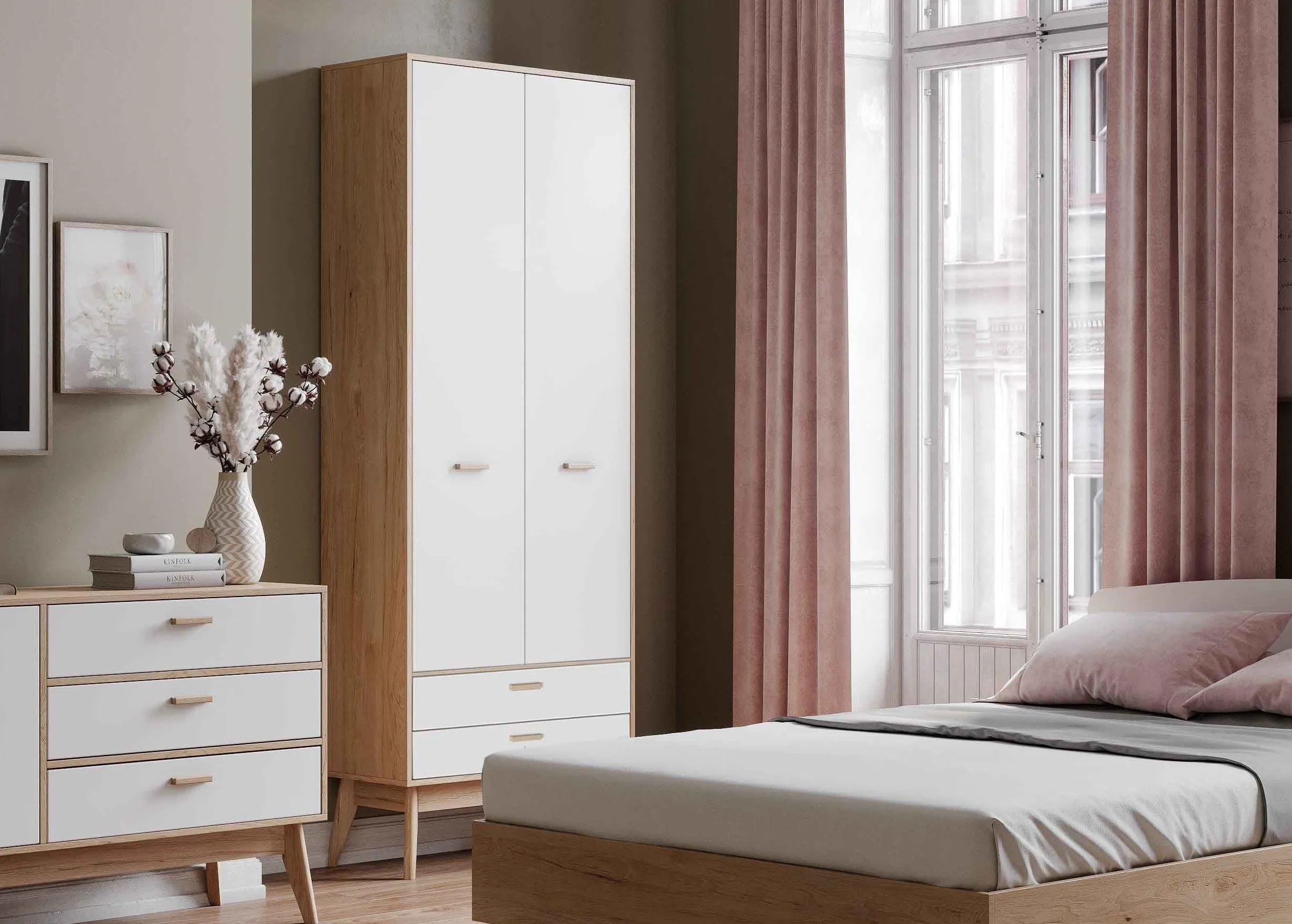 Шкаф "Калгари" двухдверный с двумя ящиками - это высокий и вместительный гардероб в модном скандинавском стиле.