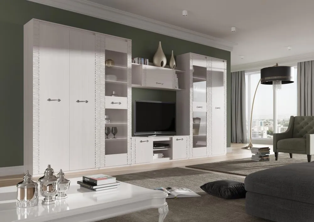 Отличительная черта серии "Элана" - вертикальные рифленые накладки на фасаде шкафа.
