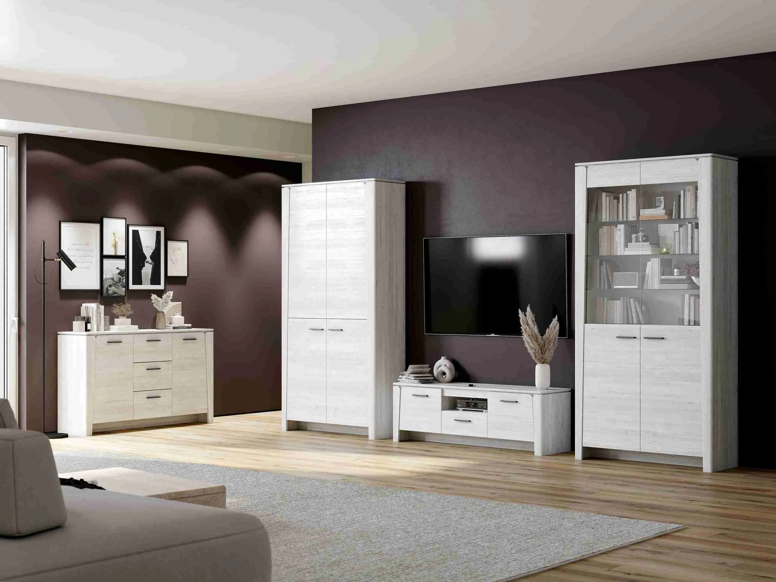 Двухдверный шкаф "Мальта" выполнен в натуральных оттенках, он подойдет как для классической, так и для современной гостиной.