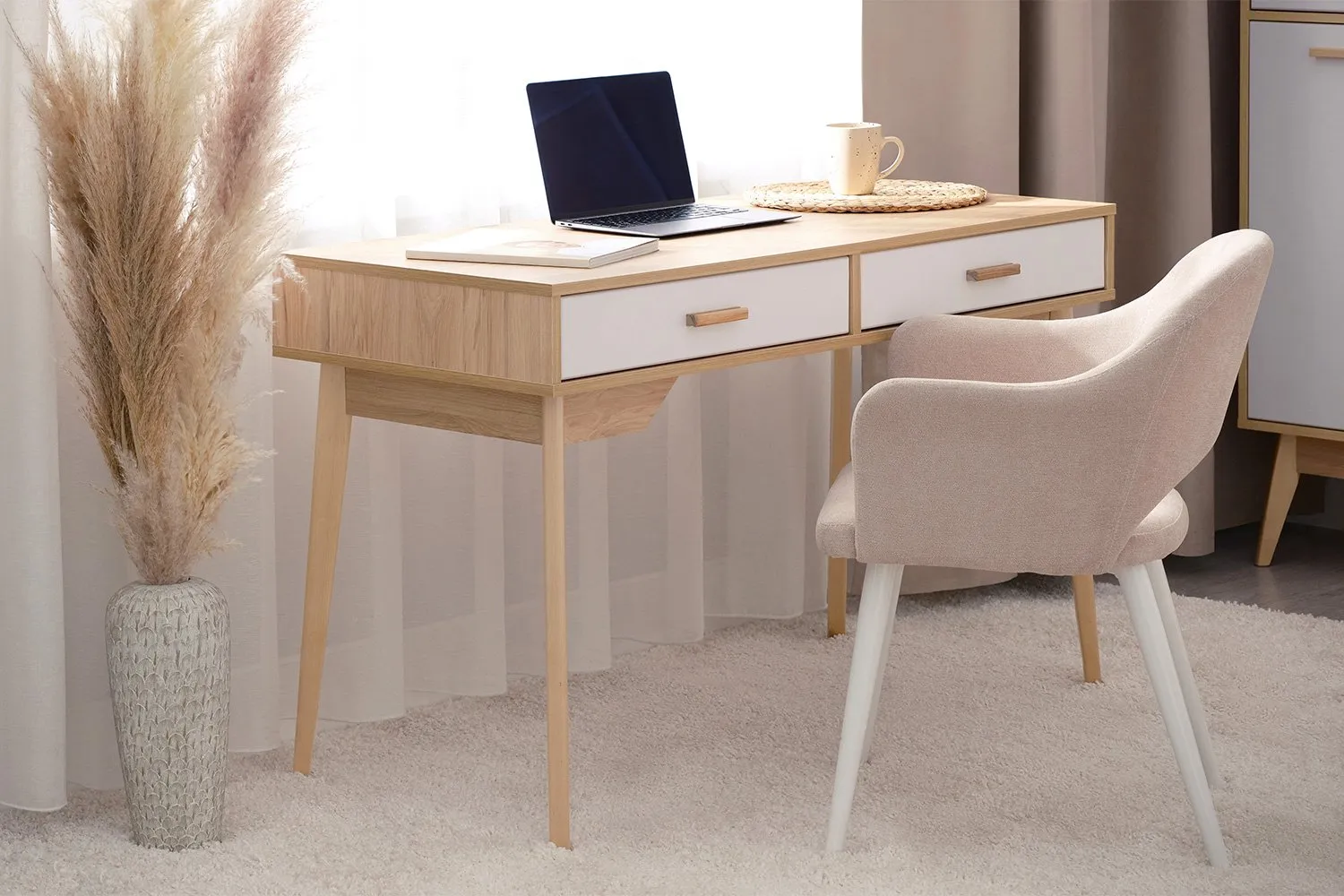 Два ящика полного выдвижения под столешницей идеально подойдут для хранения письменных принадлежностей, блокнотов и документов.