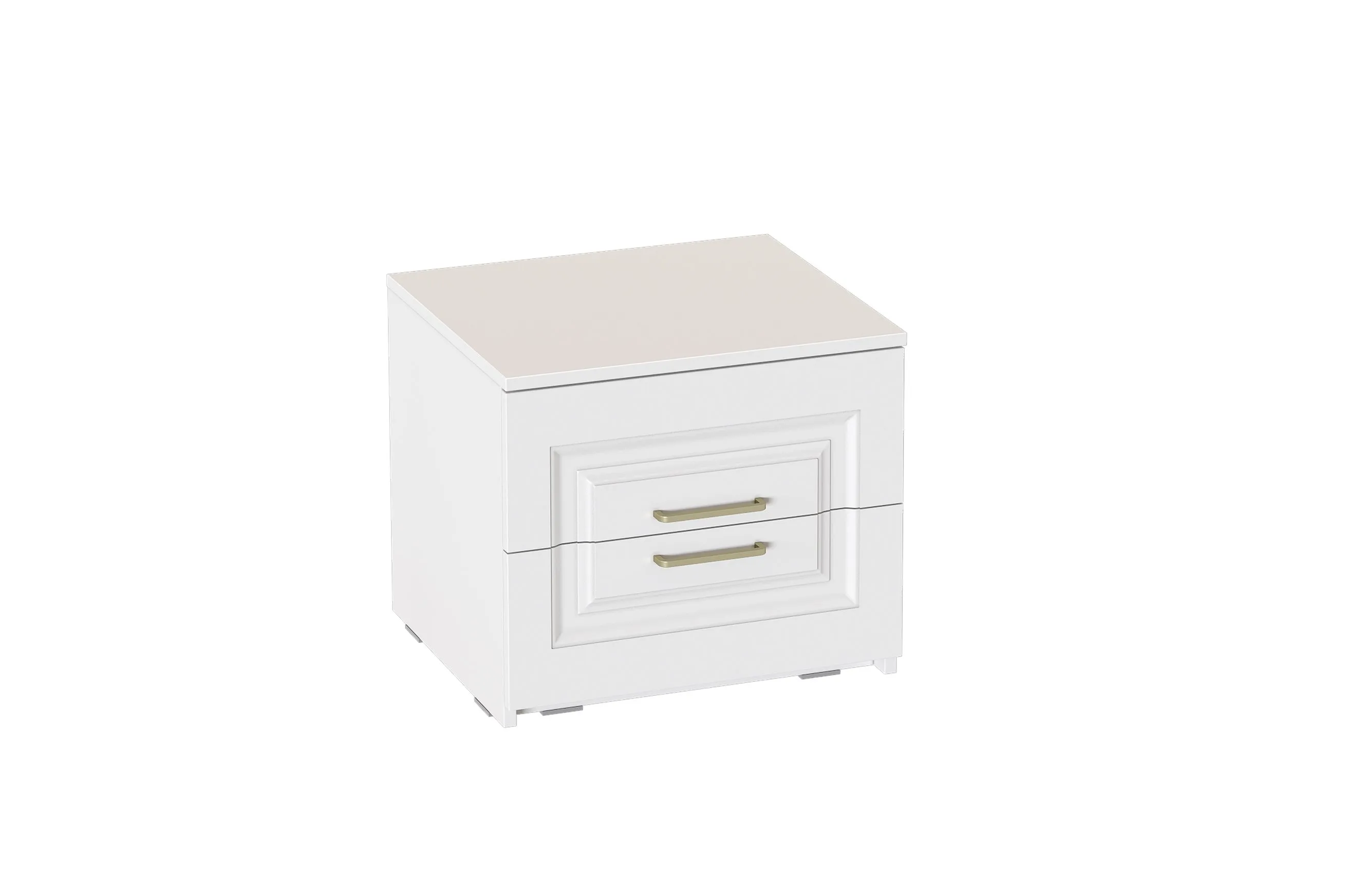 Тумба выполнена в цвете Айс 06 / Белый Аляска. Классическая фрезеровка фасадов и ручки-скобы из брашированного золота придают изделию особый шарм и элегантность. Тумба оснащена двумя ящиками полного выдвижения на шариковых направляющих, которые скользят бесшумно и плавно. Дно и задние стенки выполнены из ХДФ. На опорах размещены войлочные подпятники.
